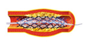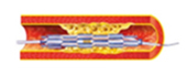 استنت که بر روی یک بادکنک خالی(بالون) سر کاتتر جمع و پرس شده است به محل تنگی رگ رانده می شود